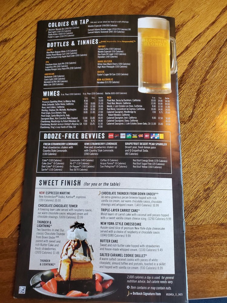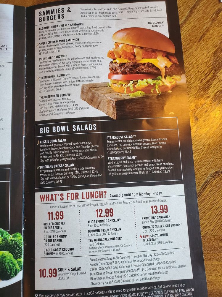 Outback Steakhouse Vacaville Menu (Update 2025)